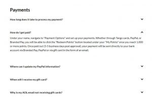 - I also like that Branded Surveys provides different rewards options for you to choose from. You can get paid in cash via PayPal or Branded Pay, or gift cards, through the Tango Card. This is good since it gives you several choices on how you want to get paid.