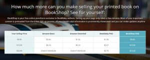 The use of this service is free and they’ll only take a portion of the profits from the sales of your book. Just check out below for the comparison of what you can make if you sell it on the BookShop Store.