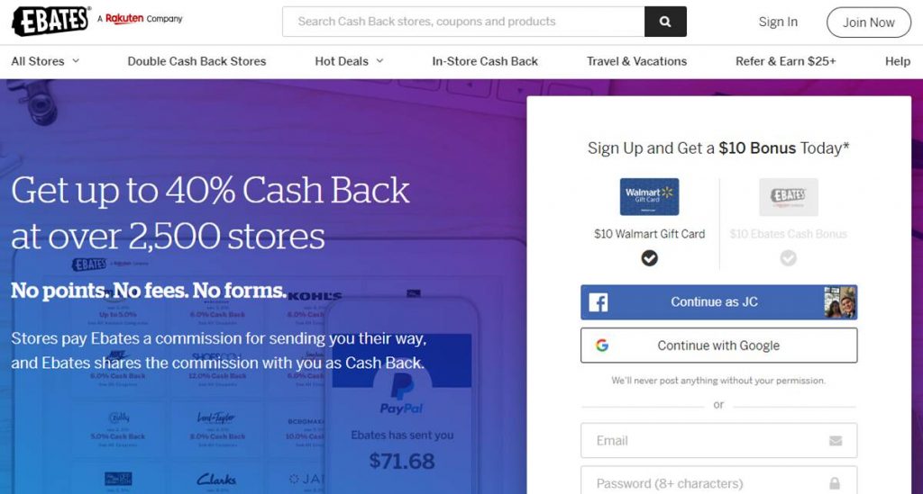 After registering, you can start earning cash back whenever you shop at over 2,500 stores. The stores include Amazon, Walmart, Macy’s, and many more.