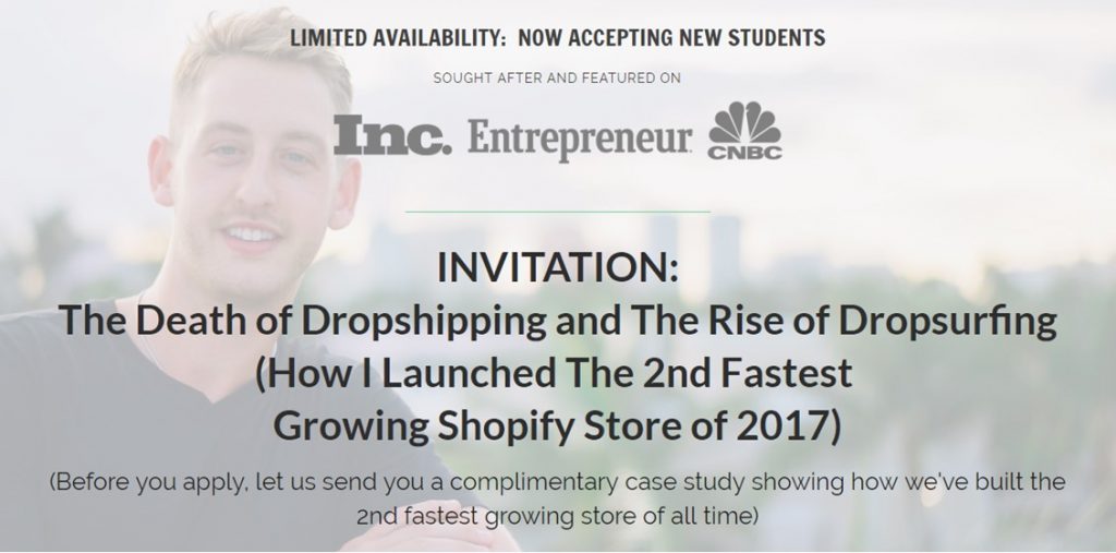 The training program is a step-by-step guide about building a successful online business and how you can implement his Dropsurfing method.