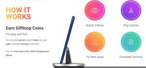 As mentioned above, the Giftloop app pays you just for charging your mobile device or unlocking it. It pays you in coins, which you can redeem for rewards like gift cards.