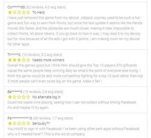 Jetpack Journey will reward you with a $10 gift card for becoming a top player. Mostly, the gift card you will get will come from Amazon, but Perk also has other gift cards from brands like Walmart, Starbucks, Gap, and many more.