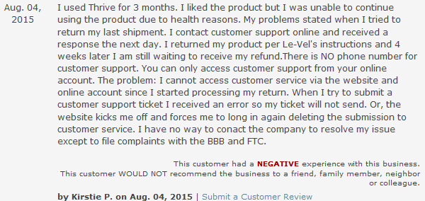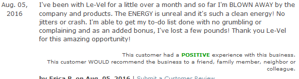 The last part of the review is a list of things to be careful of when considering Le-Vel, which will show a number of comments from people that have tried the product.