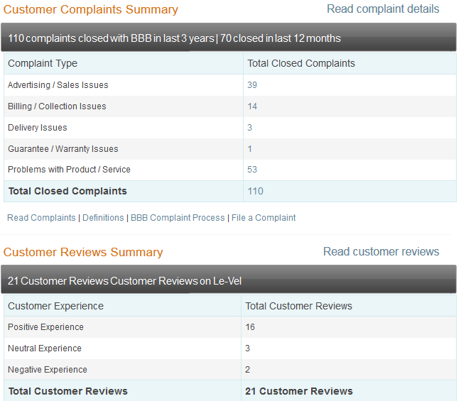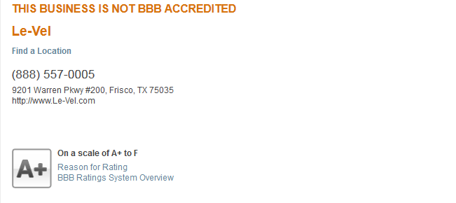 As you can see, BBB has given Le-Vel a fantastic grade but that does not necessarily mean that they are legit.