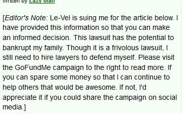 I can only speculate as to why Le-Vel is taking the author to court but it is most likely something to do with Libel or Defamation.