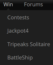 There are four different types of games you can participate in, including Contests, Jackpot4, Tripeaks Solitaire and Battleship.