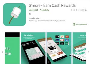 - The first thing that I liked about the S’more app is that it allows you to earn without the need to do anything much. Just by installing the app and letting it run, you will earn $0.10 a day. It doesn’t matter even if you use your mobile device only once, as long as it is installed, the app will pay you daily.