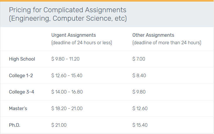 Pricing for Complicated Assignments (Engineering, Computer Science, etc)
